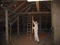 Holzbalkenbehandlung mit Rukozid zur Bekämpfung von Holzinsekten und ähnlichem.